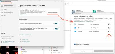Zugang über Onedrive / Einstellungen / Synchronisieren und sichern